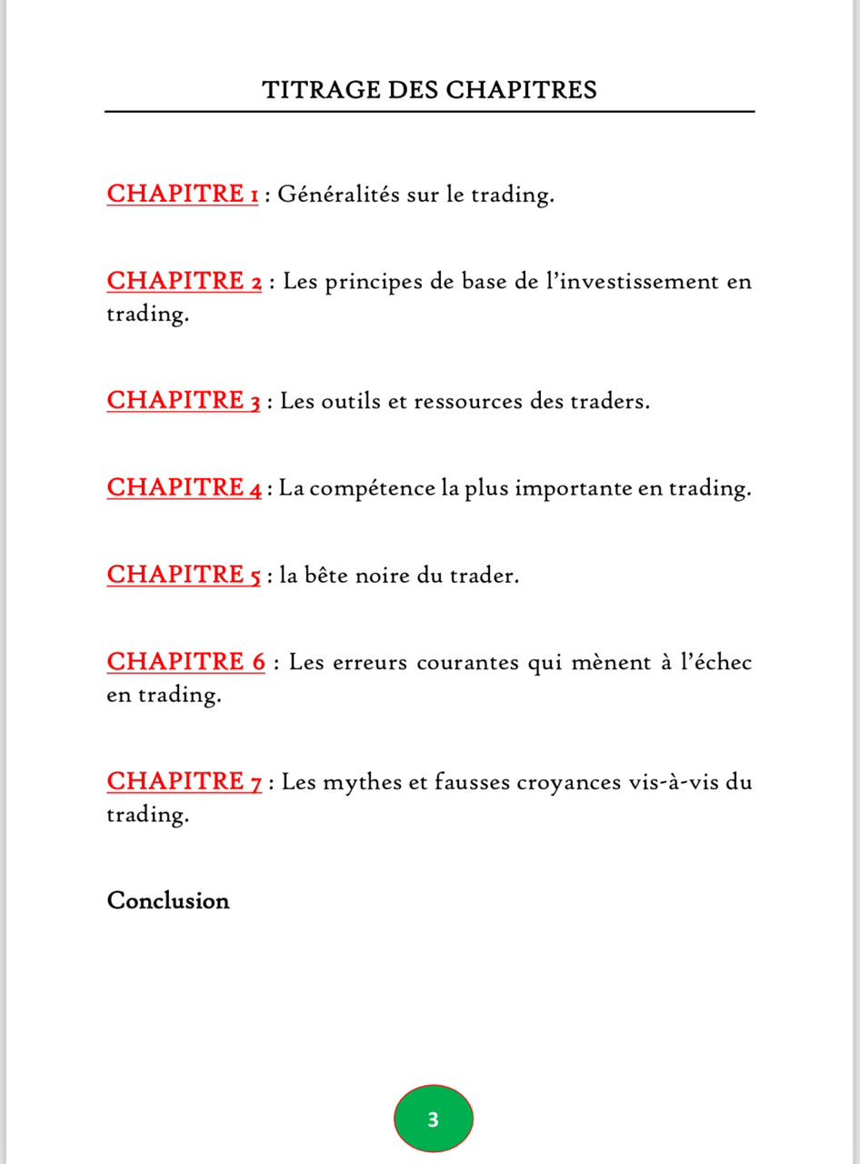 Ce livre est le guide ultime qui vous mènera à travers les complexités des marchés financiers et vous aidera à comprendre les bases et notions fondamatentales du trading ainsi que les erreurs à éviter pour y réussir.